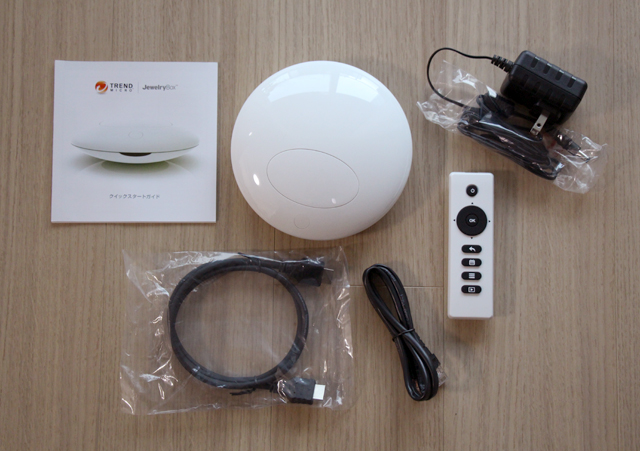 ![]() というわけでまずは、ジュエリーボックス本体と付属品などの中身を確認してみます。 箱の中身をチェックしてみる箱の中には何が入っているの? という事で、本体や付属品などのチェックをしてみたいと思います。 ![]() ![]() 箱を開けるとこんな感じ。 宝石箱か、宝箱のような箱です。 空けると真っ白くて丸いジュエリーボックス本体が見えます。 カラーは白以外には黒があります。黒のジュエリーボックスもシックな雰囲気でかわいいです。 ![]() 外部ストレージって、素材も見た目等もいかにも「機械」っぽいものが多いですが、ジュエリーボックスのつるっとした柔らかいフォルムは機器類の雰囲気を感じさせません。 ![]() コンパクトなので置き場所にも困らないし、インテリアの邪魔もしません。 見た目は丸っこいけど、底がペコペコとしたゴムのような素材になっているので安定して置くことができます。 ![]() ![]() 上の丸い部分を押すと、何やら飛び出してきます。 ![]() 左がUSBポート、右がSDカードスロット。 写真データの入ったデジタルカメラのSDカードは、ここに挿します。 データの取り込みには、USBメモリなどもこの部分に挿して使う事ができるし、無線や有線LANなどのネットワークを利用して、PCやスマートフォンなどから写真を取り込む事もできるんです。 ※PCやスマートフォンからの写真取り込については、また別のページで詳しく解説します。 ![]() 背面にはテレビに接続するためのHDMI端子や電源コネクター、インターネットに接続するためのLAN端子などが搭載されています。 テレビや液晶モニターへは、背面にあるこのHDMI端子を利用して接続するので、HDMI接続に対応したテレビや液晶モニターが必要になります。 ジュエリーボックス本体の下には、付属品や取扱説明書などが入っています。 ![]() 箱の中身を全部並べてみました。 左から時計まわりに、取扱い説明書、ジュエリーボックス本体、電源アダプター、リモコン、LANケーブル、HDMIケーブル。 殆ど必要なものが揃っているので、特に何かを買いそろえる必要はありません。 なお、HDMIに対応していない液晶モニターやテレビしかなくても、変換ケーブルなどを使えばジュエリーボックスとの接続を行える場合がありますが(できない場合もあります)、その場合に利用する変換ケーブル等は自分で用意をする必要があります。 ![]() ジュエリーボックスは、付属のリモコンを利用して操作します。 ボタンの数が少ないので、操作に不慣れた方でも比較でき簡単に使う事ができると思います。 ジュエリーボックスの利用に必要なものは?ジュエリーボックスを使うにあたり、自分で用意しなくてはならないものについて解説します。必ず用意しなくてはならないものは、HDMI接続のできるテレビや液晶モニタ、あとはインターネット回線も必要です 前の項にも書いた通り、HDMI接続に対応していないテレビや液晶モニタしか持っていないという場合でも、変換ケーブルなどを使えばジュエリーボックスと接続できる可能性はありますが(できない場合もあります)、その際に利用する変換ケーブルなどは自分で準備する必要があります。 最近のテレビや液晶モニターなら、大抵の製品にHDMIが搭載されているはずです。 ・HDMI接続対応のテレビや液晶モニター ・インターネット回線 ・変換ケーブル(必要に応じて) ジュエリーボックスを購入する場合は、事前に上記のものが揃っているかどうかを確認しておいた方が良いでしょう。 大抵の場合は大丈夫なのではと思いますが、例えば実家の親などにプレゼントするという場合、実際のテレビが古かったり、インターネット回線がない所もあると思います。 |