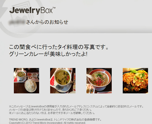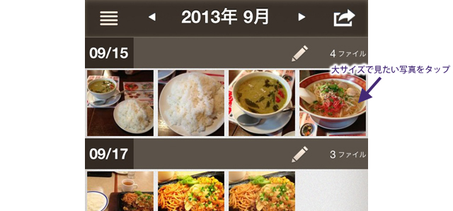 ![]() 今回はiPhoneを使ってジュエリーボックス内の写真を閲覧したり、外出先から写真を取り込む方法などについて詳しく解説します。 【目次】 1. App Storeからジュエリーボックスのアプリをダウンロード 2. アプリを使ってiPhoneとジュエリーボックスを接続 3. iPhoneからジュエリーボックスの写真を見る 4. iPhoneからジュエリーボックスへ写真を自動で取り込む 5. 共有機能を利用する(SNSやメールで写真を共有) App StoreからジュエリーボックスのアプリをダウンロードiPhoneからジュエリーボックスを利用するには、専用のアプリケーションが必要です。というわけでまずは、App StoreからiPhone専用のジュエリーボックスアプリをダウンロード・インストールします。 ![]() App Storeの検索画面で「JewelryBox」と入力、出てきたアプリをタップしてインストールします。 ![]() インストールされました。 アプリを使ってiPhoneとジュエリーボックスを接続アプリケーションをインストールしたら、次はアプリの機能を利用してiPhoneとジュエリーボックスを接続します。この初期設定はジュエリーボックスと同じネットワーク内にiPhoneを置いて行う必要がありますので、予めiPhone側でWifi接続の設定を済ませておいてください。初期設定後は、手元にジュエリーボックスがなくても(外出先からでも)iPhoneから各種の設定を行う事ができます(ネットワーク接続は必要)。 ![]() まず、ジュエリーボックスの前面にある丸いボタン(初期設定ボタン)を押します。 ![]() すると、ジュエリーボックスへ繋いでいるテレビや液晶モニターの画面に上のような案内が表示されるので、表示されている時間内にiPhoneのジュエリーボックスアプリを起動し、アプリ内の「接続」ボタンをタップします。 ![]() アプリケーションを起動し、接続ボタンをタップ。 ![]() iPhoneとジュエリーボックスの接続が完了しました。 とても簡単です。 iPhoneからジュエリーボックスの写真を見るiPhoneとジュエリーボックスを接続したら、iPhoneからジュエリーボックス内に保存している写真を閲覧してみましょう。iPhoneでもテレビや液晶モニターで見るのと同じように、日付順に写真がサムネイルで表示されます。勿論大きなサイズの写真をみる事も可能です。 ![]() サイズの大きな写真を見るには、見たい写真のサムネイルをタップ。 ![]() 上のように大きな写真が表示されます。 直感的にわかるようなインターフェースを採用しているため、操作に迷うような事はまずないでしょう。 iPhoneからジュエリーボックスへ写真を自動で取り込むiPhoneがネットワークに接続してさえいれば、iPhoneで撮影した写真を外出先からでもジュエリーボックスに取り込む事ができます。もちろん、自動で取り込まない設定をする事も可能です。 ![]() 画面左上に表示されたメニューマーク(4本線の)をタップすると、「取り込み」や「共有リスト」など各種のメニューが表示されます。 その中より「設定」をタップ。 ![]() 「写真を自動で取り込む」をオンにすると、ジュエリーボックスと同じネットワーク内に入った時に自動で写真が取り込まれます。 手動で取り込みを行いたい場合は、「写真を自動で取り込む」をオフにしてください。その場合、写真の取り込みはメニューの「取り込み」より行います。 あと「外出先からも自動で取り込む」をオンにすると、iPhoneがジュエリーボックスと同じネットワーク内にいなくても、ネットに接続されてさえいれば外出先からでも写真取り込みが行えます。 その際、無線LAN接続中(多分Wi-Fi接続の事を指している)のみ取り込むか、どのような接続であっても(Wi-Fi他、スマートフォンのデータ通信など)写真を取り込むかの設定を選択する事ができます。 例えばデータ通信の容量制限があるような接続を利用していた場合、写真の取り込みなどは極力行いたくはないですが、パケット定額のプランなどを契約していれば容量など気にせず写真の取り込みを行える・・といった具合に、環境に応じて写真取り込みの挙動を選択できるというものです。 私自身は、どのような接続環境であっても写真取り込みが行われるような設定にしています。 ちなみに、どのように写真が取り込まれるのかについてですが・・ ![]() iPhoneで写真を撮影した後にジュエリーボックスを起動させたり、またはジュエリーボックス起動中に写真を撮影したりすると、その場で写真の取り込みが開始されます。 なお、ジュエリーボックスはiPhone他、各種のAndroid端末でも利用する事ができます。 端末が異なっていても操作方法や設定、インターフェース等はほぼ同じようですが、同じ機能を利用する場合でも端末の種類によっては若干挙動が異なる場合があるよう。(iPhoneの場合、ジュエリーボックスのアプリを起動していないと、写真を撮影しても取り込みが行われない) その辺りは各端末を触ってみないとわからないので何とも言えませんが、使っているうちにわかってくると思います。 共有機能を利用する(SNS