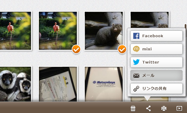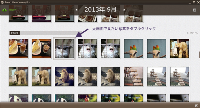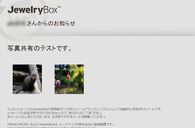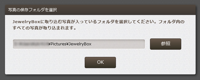 ![]() 写真の閲覧やアップロード、共有など、できる事はiPhoneでもAndroid端末でも、PCからの利用であっても殆ど同じ。ネットワークに繋がってさえいれば、外出先からPCを利用してジュエリーボックスの写真を閲覧する事も可能です。 【目次】 1. PC向けのジュエリーボックス アプリをダウンロード 2. アプリの初期設定 3. PCからジュエリーボックスの写真を閲覧 4. 共有機能を利用する(リンクの共有) 5. 共有機能を利用する その2(メールで共有) PC向けのジュエリーボックス アプリをダウンロード・インストールPCでジュエリーボックスを利用するためには、PC専用のアプリケーションをダウンロードする必要があります。今回の記事では、Windows 7を搭載したPCを利用していますが、PC向けのジュエリーボックスアプリケーションは、Windowsであればどのバージョンでも利用できるようです。(試したわけではありませんが、アプリの仕様にはそう書かれています) ![]() まず、PC向けのジュエリーボックスアプリケーションの実行ファイルを「//tmqa.jp/JB_winagt/」からダウンロードします。 ![]() ダウンロード画面。 なお、上画像に表示のファイル名はアプリをダウンロードした時点のもので、ダウンロードする時期によってアプリのファイル名が変更される可能性があります。(バージョンアップなどで) ファイルをダウンロードしたら、クリックして実行します。 ![]() ジュエリーボックスのインストールダイアログが表示されるので、ウィザードに沿って進み、アプリをインストールしてください。 特に難しい設定などはありません。 アプリの初期設定アプリケーションをインストールしたら、次は初期設定を行います。アプリケーションを起動すると、ジュエリーボックスとPCを接続するための設定画面が表示されるので、表示されている内容に従って設定を行ってください。 ![]() ![]() ジュエリーボックス本体の前面にある初期設定ボタンを押し、2分以内にアプリの画面右側に表示された「接続」ボタンをクリックしてください。 ![]() 接続が完了しました。 とても簡単な設定ですが、もし接続に失敗した場合はもう一度ジュエリーボックスのボタンを押すところからやり直してください。 初回接続時には、ジュエリーボックスに取り込む写真の保存用フォルダを尋ねられます。 ![]() この写真保存用のフォルダは、PC内の写真をジュエリーボックスに取り込むためのもの。このフォルダに入れた写真だけが、自動的にジュエリーボックスに取り込まれるという仕組みになっています。 新しくフォルダを作っても良いですし、ピクチャフォルダ自体を指定しても良いでしょう。 ![]() 私の場合、は普段からカメラで撮影する写真の数が多い事、また一枚一枚の写真サイズも大きく全部を取り込むととても時間がかかる事などが考えられる為、ジュエリーボックスに入れたい写真だけを「JewelryBox」というフォルダに入れて取り込むようにしています。 PCからジュエリーボックスの写真を閲覧初期設定を終えたら、早速PCからジュエリーボックス内の写真を閲覧してみましょう。使い方はテレビでの操作時や、iPhone・Android端末でのアプリ操作時と殆ど同じです。![]() 大きな画面で見たい写真を選んでダブルクリック。 ![]() 大画面で表示されました。 大きな液晶を利用している場合、大画面でみる写真は迫力です。 もちろん、スライドショーなどで順番に写真を見る事もできます。 共有機能を利用する(リンクの共有)ジュエリーボックスにはSNSやメールを利用して写真を簡単に共有する機能が備えられていますが、その機能はもちろんPCからでも利用できます。iPhoneの解説で「メール」を利用した共有の流れについて触れたので、今回は「リンクの共有」について触れてみます。 ![]() まず、共有したい写真をクリック(シングルクリック)して選択していきます。 ![]() そして、アプリの画面右下に表示されている共有メニューをクリックし、表示されたメニューの中から「リンクの共有」をクリック。 ![]() すると、共有リンクが自動的にコピーされるので、そのままメールなどに内容をコピーしてください。 ![]() コピーしたリンク。 リンクをクリックすると、写真をダウンロードする事ができます。 メールなどにリンクをコピーし、写真を共有したい相手に送ると良いでしょう。 試しに、このうちの一つのリンクにアクセスすると・・ ![]() ダウンロード画面が表示。 ![]() ![]() ちゃんと、写真がダウンロードされました。 テキストリンクなので、メール以外にも様々な所に掲載できるという所が便利だと思います。 共有機能を利用する その2(メールで共有)メールによる共有方法についても流れを掲載しておきます。手順は、iPhone版のジュエリーボックスアプリケーションで行った操作とほぼ同じです。 ![]() まず、共有したい写真を選択し、右下の共有メニューから「メール」を選択します。 ![]() 表示されたメールに送信先のアドレスと件名、メール本文など